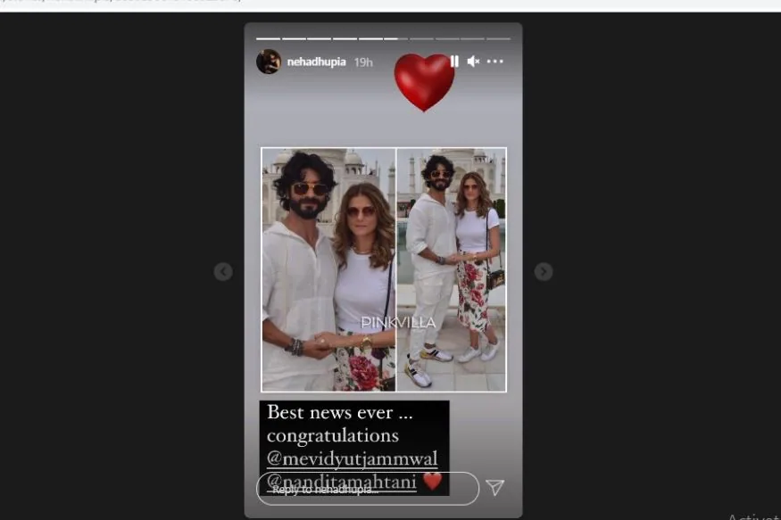 Neha Dhupia’s social media updates says, “Best news ever… Congratulations @mevidyutjamwal @nanditamahtani. With a red heart sticker” We’re as excited as you are for the final word.