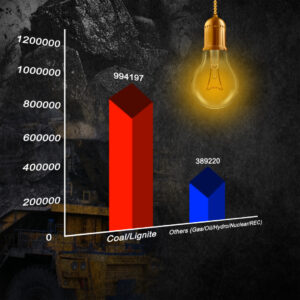 Coal/lignite accounts for 72% of the total gross electricity generated in the country. Out of 13.8 lakh GWh gross electricity generated in the country the electricity generated by Coal/lignite in FY 2019-20 was about 10 lakh GWh. The total electricity generated by all other mode (Gas/Oil/Hydro/ Nuclear/REC) i.e. non coal sources accounts for only 3.8 lakh GWh.