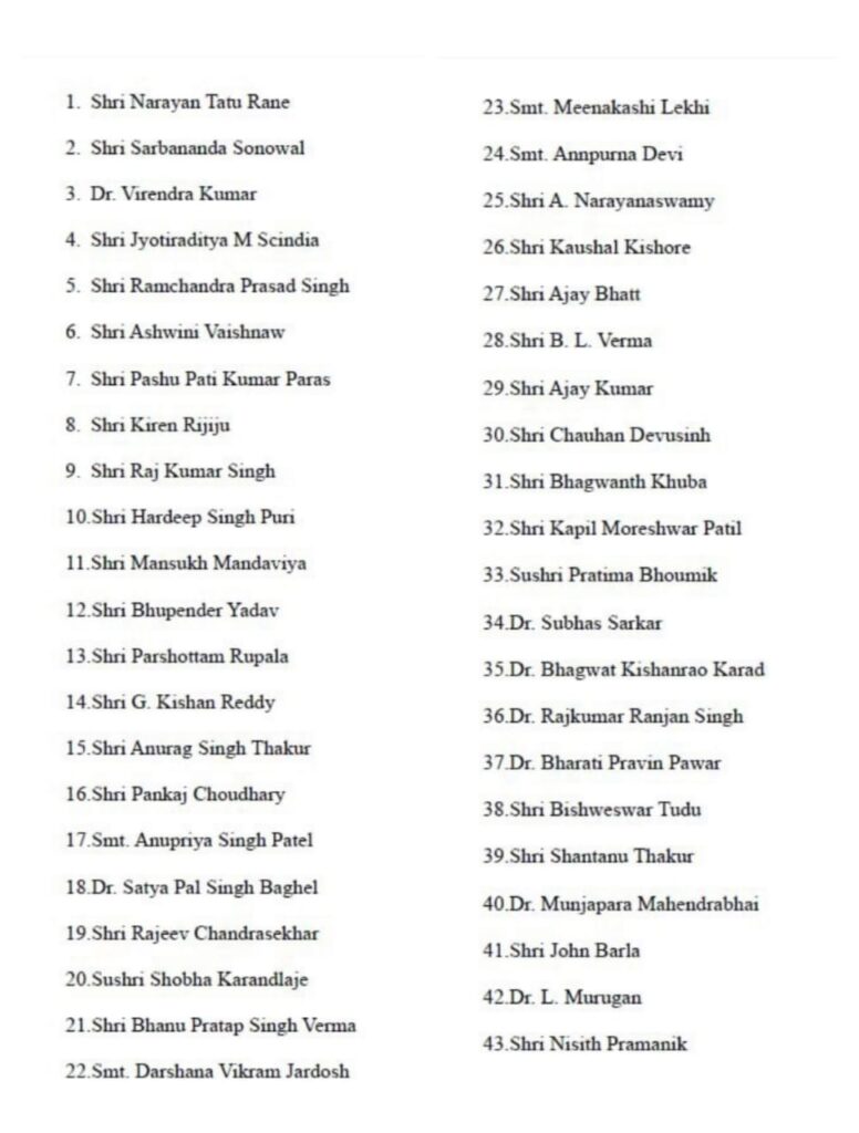 Jyotiraditya Scindia, Pashupati Kumar Paras, Bhupender Yadav, Anupriya Patel, Shobha Karandlaje, Meenakshi Lekhi, Ajay Bhatt, Anurag Thakur are among the ministers, new and old, who will take the oath.After cabinet expansion, the Modi government is expected to have 27 OBC leaders out of which five will be in the cabinet.Sources further informed that there will be a substantial increase in the number of professionals in the cabinet.”Post expansion there will be 13 lawyers, six doctors, five engineers, and seven civil servants in total,” the sources said.