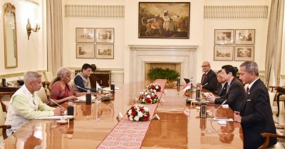 New Delhi, Sep 17: Union Finance Minister Nirmala Sitharaman on Saturday participated in the India-Singapore Ministerial Roundtable conference along with External Affairs Minister S. Jaishankar and Commerce Minister Piyush Goyal with a visiting delegation from the island nation led by its Deputy Prime Minister and Finance Minister Lawrence Wong.
