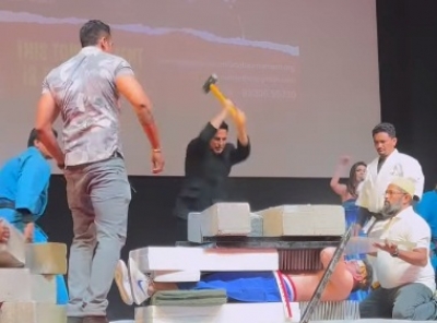 Mumbai, Oct 27: Action star Akshay Kumar attended a Kudo tournament, where he stunned all as he showcased his strength by breaking thick bricks with a hammer.