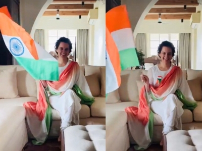 Mumbai, Aug 15: Bollywood actress Kangana Ranaut, who is down with dengue, says that although she could not leave her room, the spirit of national celebration has taken over her in the most empowering way.