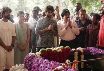 Vijay and Ananya visited the Samadhi of Puneeth Rajkumar located within the premises of Kanteerava stadium and paid a floral tribute to the late actor.