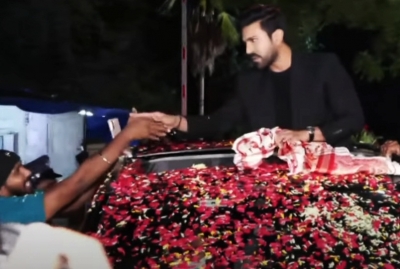 Ram Charan lands in Hyderabad to grand welcome by fans