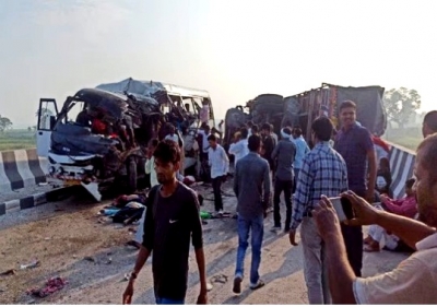 Lakhimpur Kheri (Uttar Pradesh), Sep 28: Six persons were killed and several injured when a bus collided head on with a DCM vehicle near Sharda bridge on Pilibhit Basti Highway in Lakhimpur Kheri district on Wednesday morning.