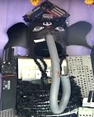 The idol was made from vacuum cleaner and other electronic gadgets in the showroom which had used the pipe of a vacuum cleaner to make a trunk, while mixer and clothes iron were used to make hands and feet of the deity.