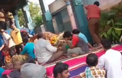 Puducherry, Nov 30: A 32-year-old female elephant of Sri Manakula Vinagayar temple collapsed on the road and died on Wednesday. Two mahouts were accompanying the elephant when it went out in the morning.
