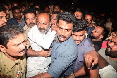Hyderabad, Nov 3: Telangana state BJP president Bandi Sanjay was detained by police on the outskirts of Hyderabad early Thursday, when he was heading to Munugode Assembly constituency where polling began this morning.
