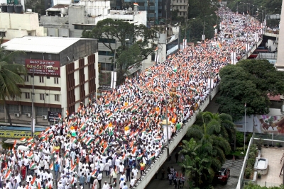 The 7-km-long march began here from Sangolli Rayanna Circle at 2 p.m. on Monday and culminated at National College Grounds in almost 4 hours.