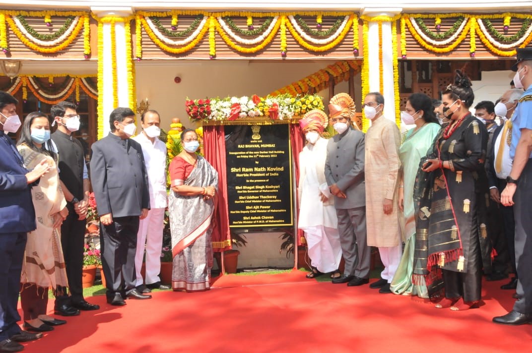 Mumbai, Feb 11: President Ram Nath Kovind on Friday inaugurated the reconstructed Darbar Hall of Raj Bhavan here in the presence of Governor Bhagat Singh Koshyari, CM Uddhav Thackeray and Deputy CM Ajit Pawar.