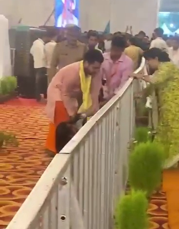 In the video, a woman can be seen breaking the security barricade and reaching in front of Dhirendra Shastri’s stage. A volunteer picks up the woman and throws her across the barricade.