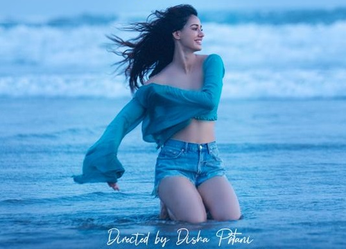 In the poster, Disha looks carefree and enjoys the soothing waves at the beach. She is wearing denim shorts with a turquoise blue top and like always, she is looking fabulous.