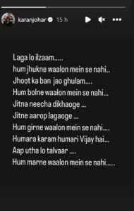 Taking to his Instagram stories, Karan shared a Hindi poem changing some words for the situation.