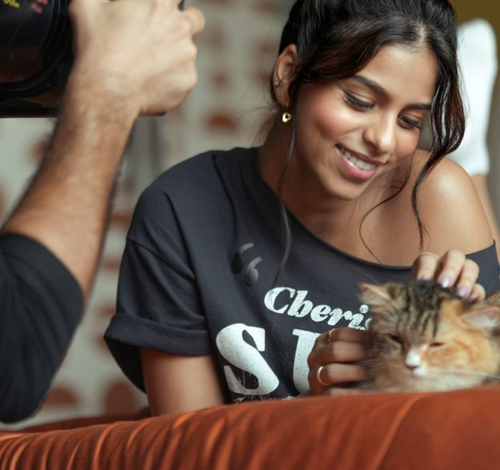 Shah Rukh took to Instagram, where he posted a picture of Suhana from the shoot. It shows her posing with a cat. Shah Rukh also said that she is “comfortable and pretty” behind the camera.