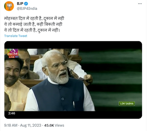 ये तो दिल में रहती है, दुकान में नहीं। pic.twitter.com/JqfEHMXnNu— BJP (@BJP4India) August 11, 2023