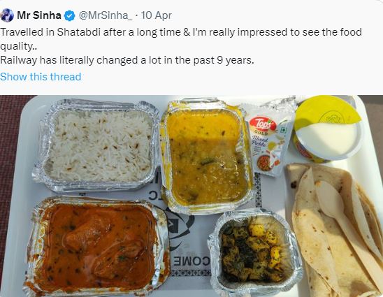 “Travelled in Shatabdi after a long time & I’m really impressed to see the food quality.. Railway has literally changed a lot in the past 9 years,” read the caption. It shows dal, chicken, aloo with some rice and chapati. Not only did it look delicious but was also very neatly and nicely presented. The post went viral immediately and garnered multiple appreciative messages.