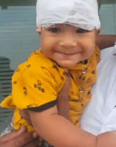 The picture of a smiling baby with a bandage over her head went viral on social media in the state. The baby, Keerthi, who suffered injury in the incident, is seen smiling even after suffering the injury. People are showering the baby with affection and appreciation.