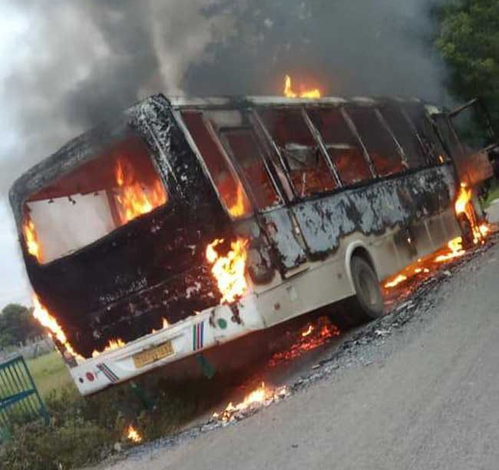 People travelling in the bus got down immediately, which averted a major tragedy.