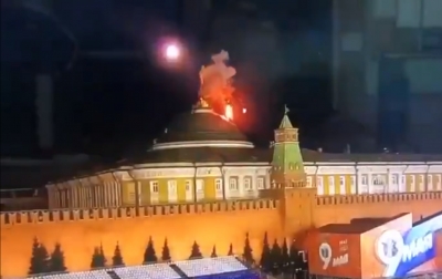 Unverified footage circulating online showed smoke rising over the Kremlin, reports the BBC.
