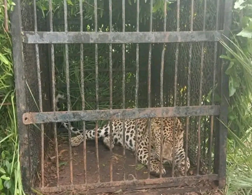 Three days later, the leopard was trapped in a cage by the forest department near the same spot.
