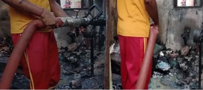 According to sources, the fire reportedly started due to the explosion of firecrackers. The fire is said to have started at 6:30 this morning. The fire service personnel has extinguished the fire.