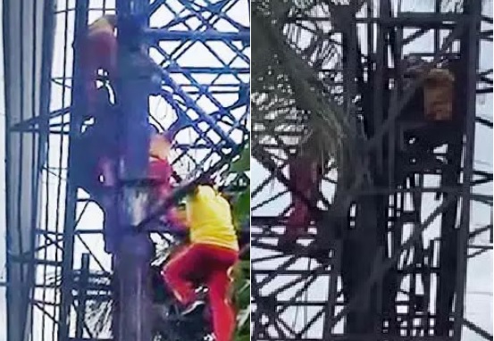 In a bizarre incident, a man climbed atop a 40-feet high hoarding tower near Sishu Bhawan Chhak in Bhubaneswar on Wednesday with an attempt to commit suicide.