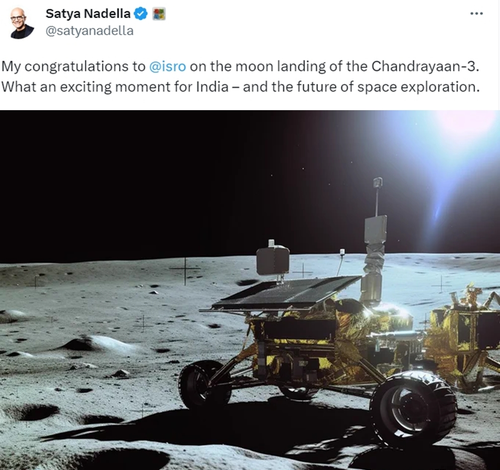 “My congratulations to @isro on the moon landing of the Chandrayaan-3. What an exciting moment for India – and the future of space exploration,” Nadella said.