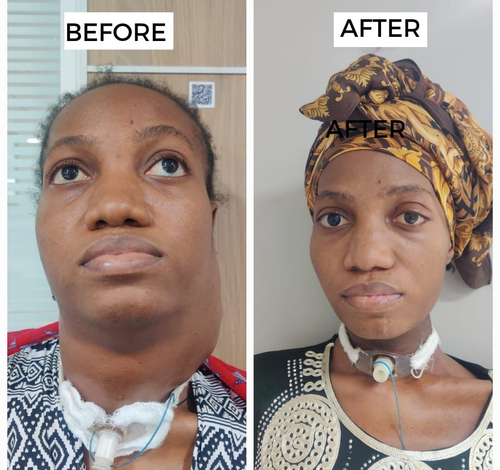 The patient, who was dealing with the huge mass on her neck since 2019, had already undergone two unsuccessful surgical attempts in her own country.