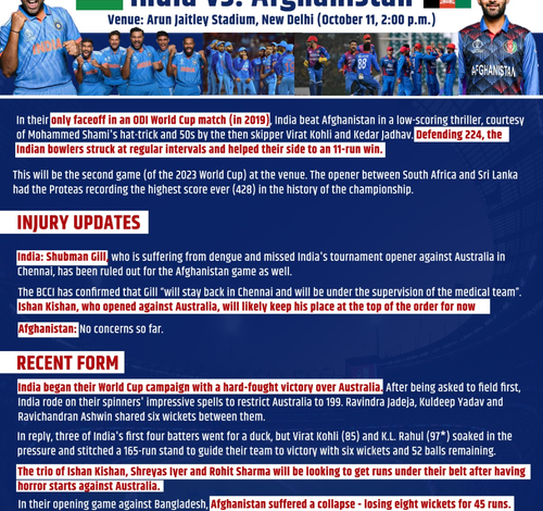 After winning the toss, Afghanistan skipper Hashmatullah Shahidi said: “It looks like a good batting surface. We have a good bowling attack to restrict them. It looks like a good surface, we want to bounce back with the bat. We are enjoying, good chance to showcase our talent. We are going with the same team.”