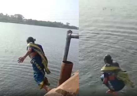Watch: saree-clad elderly women diving into Tamil Nadu’s Thamirabarani River As Part of ‘Regular Affair’