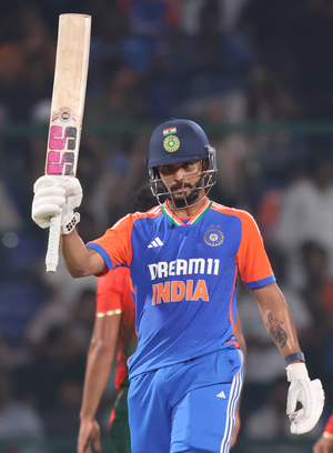 New Delhi, Oct 10: All-rounder Nitish Kumar Reddy lit up the Arun Jaitley Stadium with a scintillating six-hitting show in a sensational 34-ball 74 to be one of the big architects of India’s 86-run win over Bangladesh and take an unassailable 2-0 series lead.