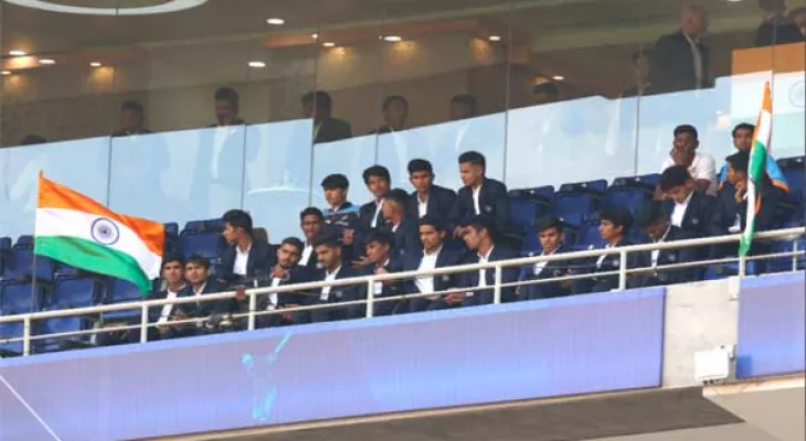 Ahmedabad, Feb 9: The India U19 Cricket World Cup winning team on Wednesday attended as special guests the second India-West Indies One Day International (ODI) here.