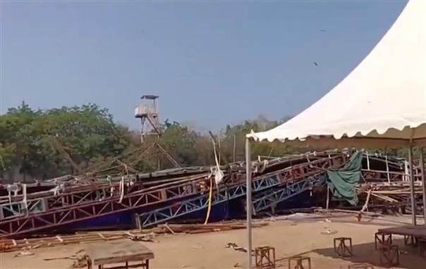 New Delhi, Feb 17 : Two people were rescued after they got buried under the debris of temporary structure at Delhi’s Jawaharlal Nehru stadium which collapsed on Saturday morning, a fire department official said.