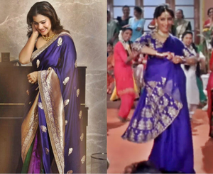 An ardent social media user, Kajol took to Instagram where she has 17.3 million followers and shared a string of photos, in which we can see her donning a purple saree with golden motifs and border. In the pleats, we can see hues of wine and green colours.