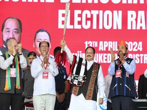 Nagaland Chief Minister and senior NDPP leader Neiphiu Rio, Deputy Chief Minister and BJP legislature Party leader Yanthungo Patton and NDPP candidate Chumben Murry among others were present at the election rally.