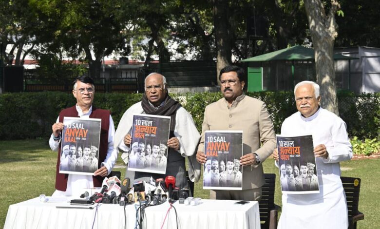 Soon after Congress released the document, Prime Minister Modi walked into Rajya Sabha to bid farewell to MPs whose term is about to end. Addressing the House, he said, “Kharge ji is here. If a child does something good, if a child gets ready for a special occasion and puts on nice clothes, someone in the family puts a ‘kaala tika’ to ward off the evil eye. Over the past 10 years, the country is climbing new summits of prosperity. To ensure we are safe from the evil eye, an attempt has been made to put a ‘kaala tika’. I want to thank Kharge ji for that,” the Prime Minister said in a sarcastic response to the Congress move.