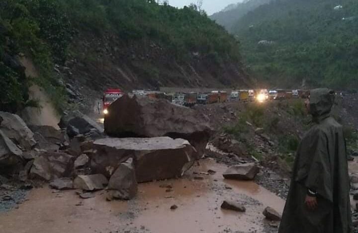 “Jammu-Srinagar NHW is blocked due to shooting stones at T2, heavy rainfall along NHW and snowfall between Ramsoo and Banihal,” Jammu and Kashmir Traffic police said.