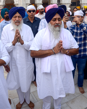 Sukhbir Badal, along with four former Cabinet ministers, appeared before the Akal Takht as common men, and had said in a written clarification that they “are ready to accept all pronouncements”.