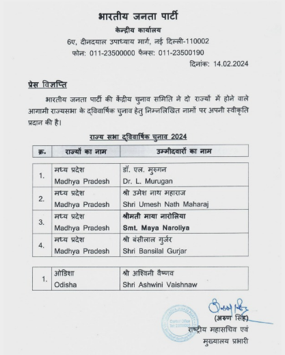 Bhubaneswar: The Bharatiya Janata Party (BJP) announced Railway Minister Ashwini Vaishnaw as its candidate for the upcoming Rajya Sabha elections in Odisha. This decision puts an end to speculation surrounding the third candidate for the crucial seats. Vaishnaw’s nomination comes amid a flurry of political activity in the state, with the Biju Janata Dal (BJD) stalwarts Debashish Samantray and Subhasish Kuntia already filing their nomination papers. These developments underscore the fierce competition expected in the state’s political arena.