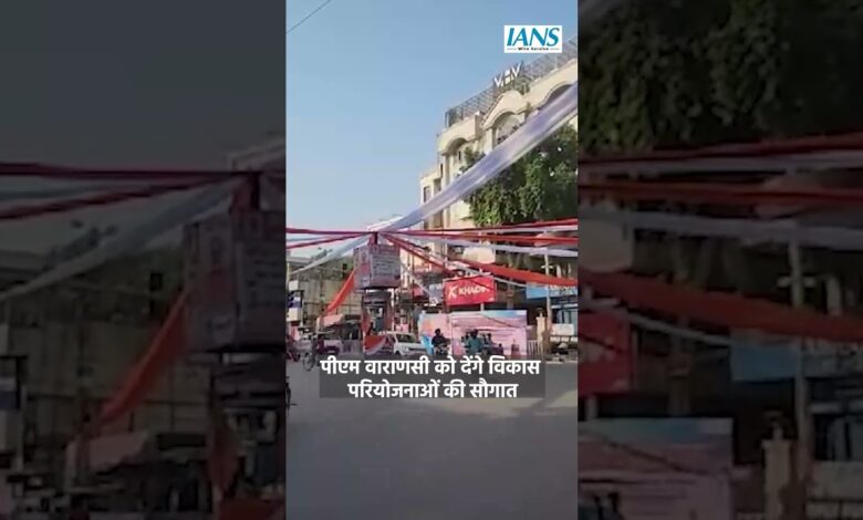Varanasi decorated with saffron color and posters to welcome PM Modi