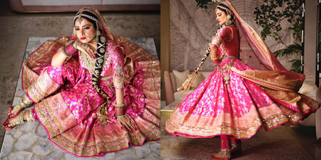 Mumbai, March 25: Legendary actress Rekha continues to captivate with her ageless beauty and elegance. Recently, she turned heads in an exquisite pink lehenga by designer Manish Malhotra.