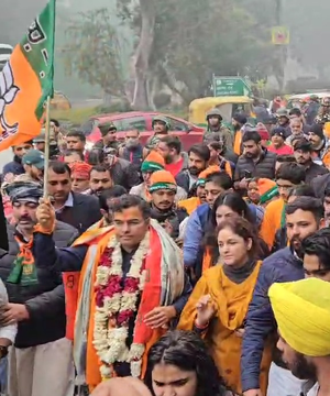 New Delhi, Jan 15: Before filing his nomination for the Assembly polls, former Delhi BJP MP Parvesh Verma prayed at the Gauri Shankar temple in the national capital and held a roadshow, which was attended by a large crowd.
