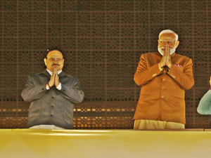 Earlier, celebrations began early at BJP offices as vote counting trends showed that the party was storming to power after 27 years.