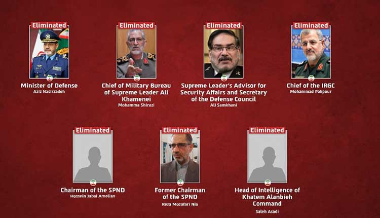 Tel Aviv: The Israel Defense Forces (IDF) on Sunday announced that seven senior Iranian military commanders, including Defence Minister Aziz Nasirzadeh and the Chief of the Islamic Revolutionary Guard Corps (IRGC), were killed in what it described as precise airstrikes carried out across Iran.