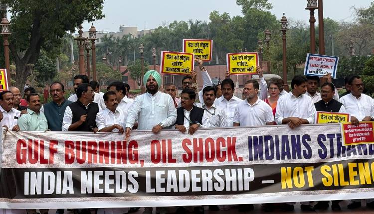 “Led by LOP Rahul Gandhi ji, INDIA Bloc MPs protested in the Parliament complex against the Compromised PM’s complete silence on the Gulf War. Ordinary Indians will suffer due to surging energy costs – already seen with the hike in LPG cylinder rates — and those in the Gulf are totally stranded in a war zone,” he wrote.