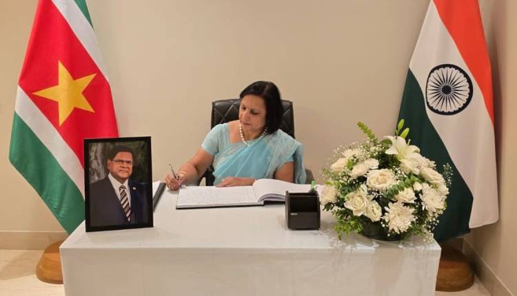 In a post on X, the Ministry of External Affairs stated, “Secretary (South) Dr. Neena Malhotra visited the Embassy of the Republic of Suriname and on behalf of the people and Government of India, signed the condolence book on the sad demise of former President Mr. Chandrikapersad Santokhi.”