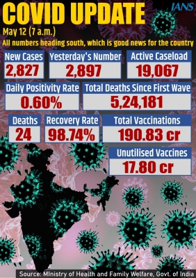 May 12: India on Thursday witnessed a marginal decline in Covid-19 cases with 2,827 fresh infections registered in the past 24…