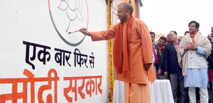 Yogi launches wall writing campaign with ‘Is baar BJP char sau paar’