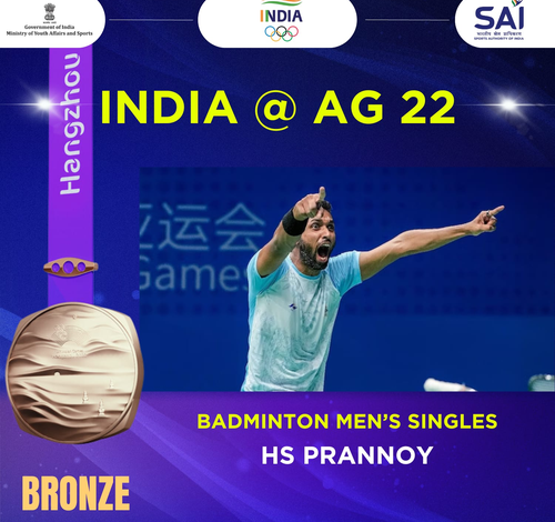 Hangzhou, Oct 6: India’s Haseena Sunil Kumar Prannoy won bronze after losing the semifinal 0-2 to world-ranked 7, China’s Li Shifeng in the semifinal of men’s singles Badminton with a scoreline of, 16-21, 9-21, here on Friday.