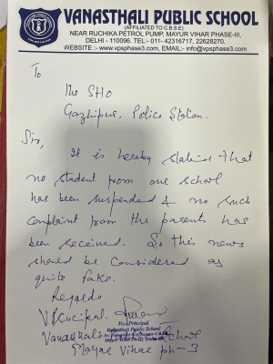Vanasthali Public School also denied the incident, stating that the administration didn’t receive any complaint in this regard from the parents.